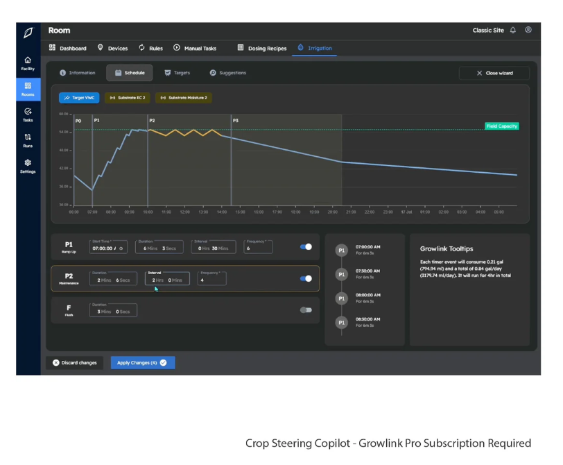 Optimize your cultivation with precision: Introducing the ultimate automation in irrigation management. Our AI-driven crop steering program, a first in the market, empowers you to automate your irrigation effortlessly. Utilize sensor triggers, timers, and schedules to ensure your crops receive exactly what they need, when they need it. Elevate your agriculture technology and put your irrigation on autopilot. Experience unparalleled efficiency and productivity.