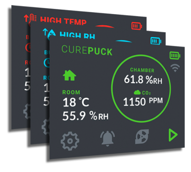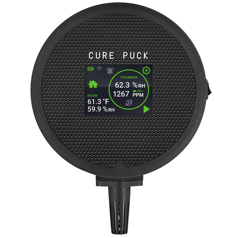 The Cure Puck helps ensure perfect curing every time by measuring key indicators in the headspace, the environment in the curing room and automatically burping containers when required.