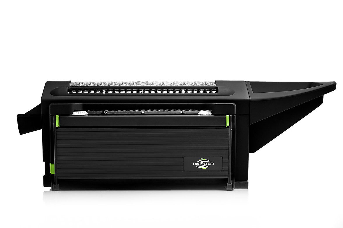 The Twister T6 is a revolution in small batch trimming and automation. The radical new small-capacity tabletop design allows for quality, hand trim-finished trimming speeds of up to 5 lbs/hr dry, 18 lbs/hr wet, right from the comfort of your own home! Finally. Home grown, hand trim-finished product is now possible with an automated small machine trimmer. All from the company that started it all in 2007.