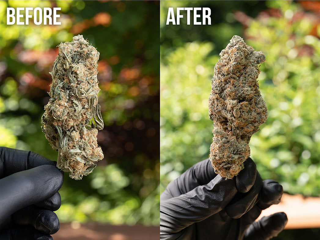The T6 is capable of trimming a broad range of flower moisture contents, from 8% dry to fully hydrated, both using the new T6 Extreme Tumbler.